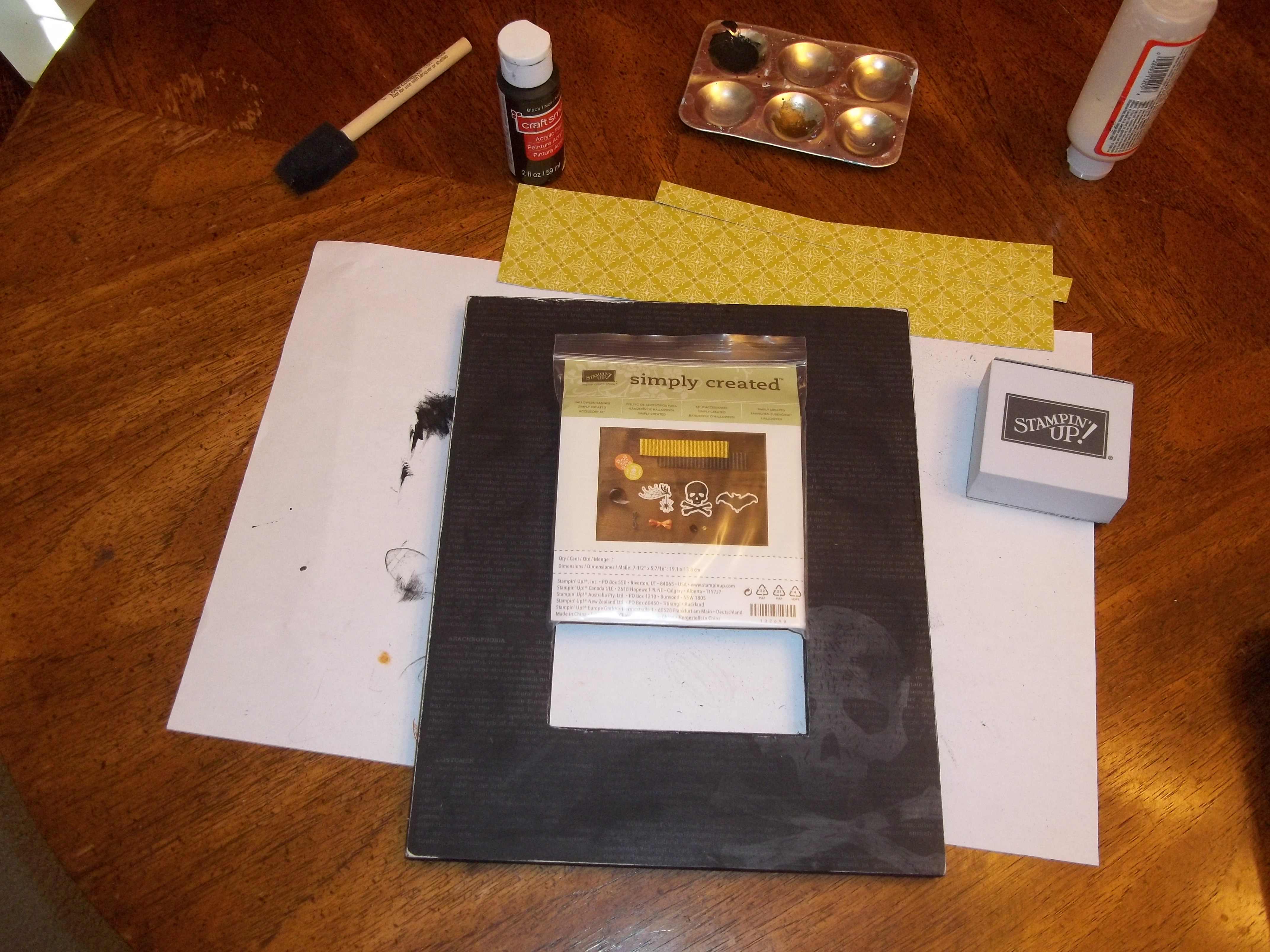 Sarah showed us a cute way to use the Halloween Banner Simply Created Accessory kit! (132698, $9.95) I also used Witches Brew DSP (132185, $10.95) for the surface of the frame! I went to the craft store and bought a nude 5×7 frame and then bought some decorative trim at Lowe’s. I stamped the saying from Toil & Trouble (131724 wood $22.95, 131727 clear $16.95). The rest of the items were all precut! I just hot glued the lollies and attached the rest!