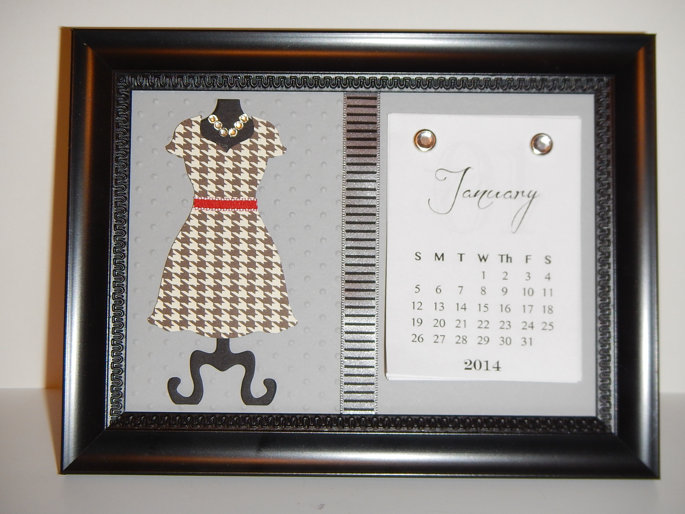 These were cute gifts I made for Christmas this year! So simple! I went to Big Lots and bought a 3 pack of frames for $5. Then I cut a 5×7 piece of paper and dry embossed one side using an embossing folder. I then printed these cute calendars from Leena Loh’s blog. (click here for the link) I love the Dress Up framelits! It makes these so cute and trendy!