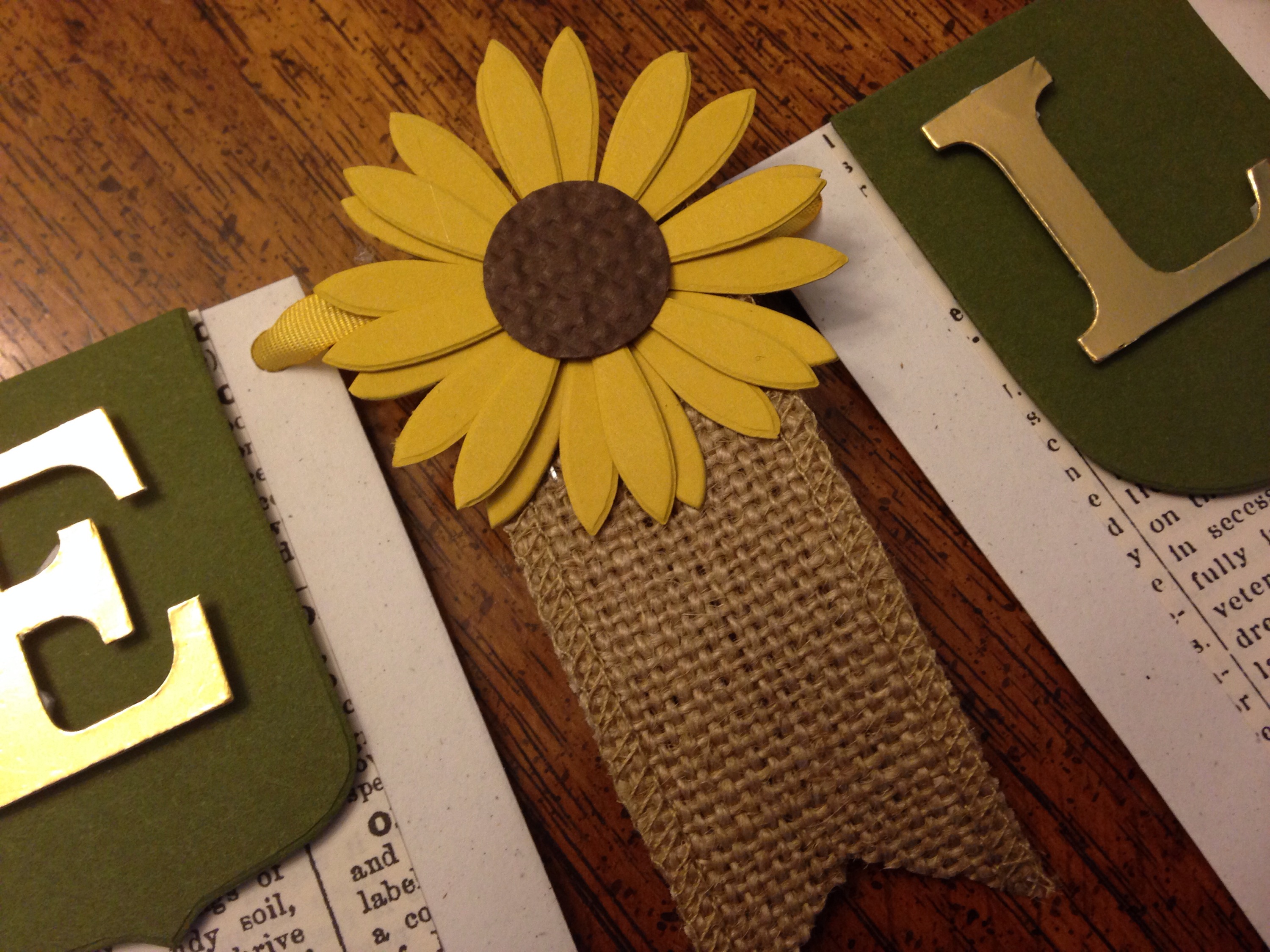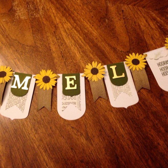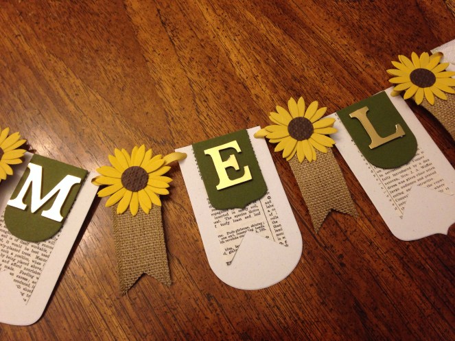 Of all the banners that I have made, this one has to be my favorite!!! Sunflowers are just so cheerful, and the burlap makes it look super vintage! The bigshot made this so easy and quick to do!