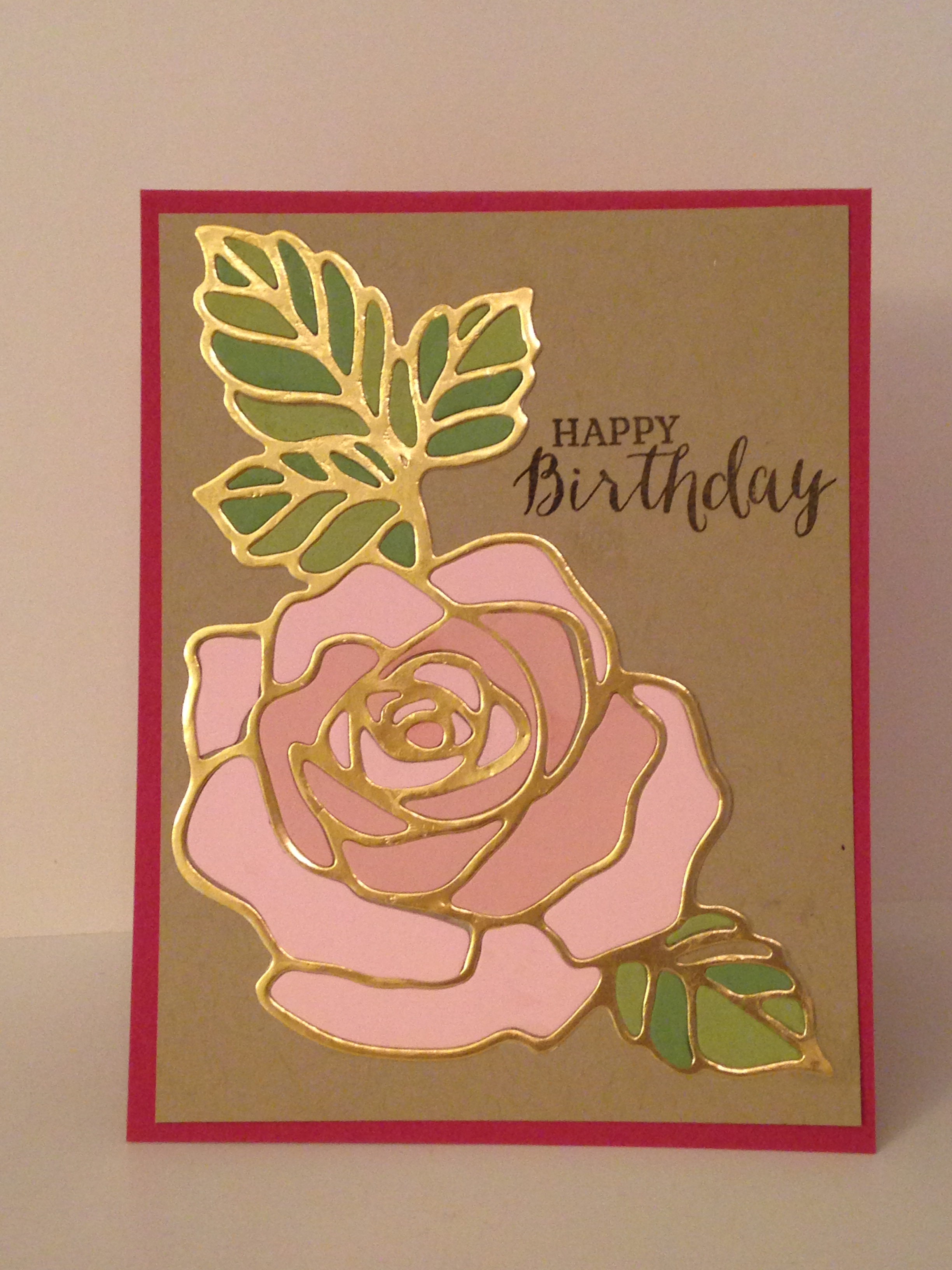 I saw a couple of other cards using the positive and negative of the Rose Garden Thinlits! I chose Blushing Bride, Pink Piourette, Wild Wasbi, and Pear Pizzazz for my cardstock colors.