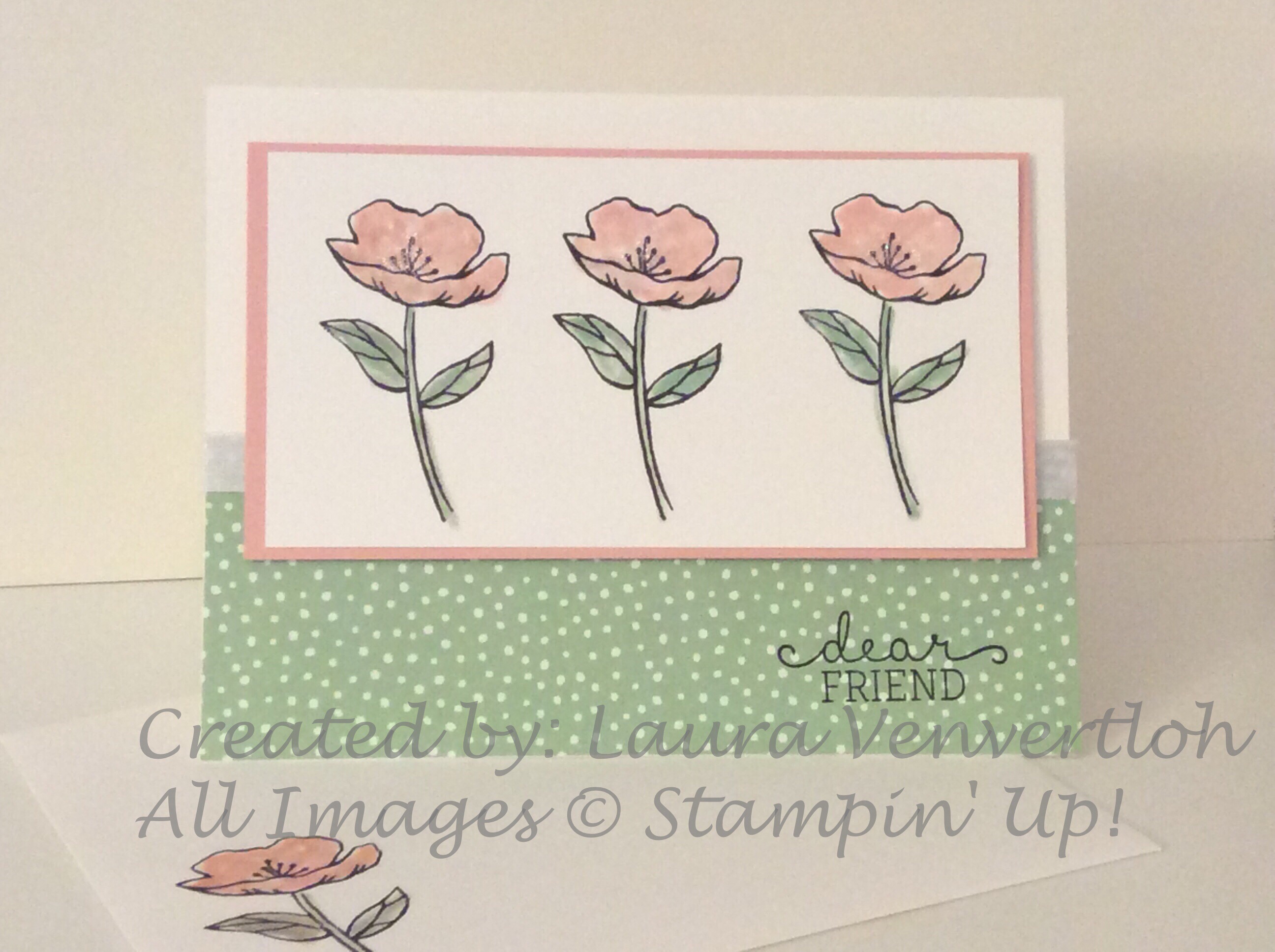 I saw a card on Lee Conery’s blog and I had to make one! It features the Birthday Blooms stamp set and coordinating DSP. I added the DSP and ribbon, but the rest is cased from her blog.
