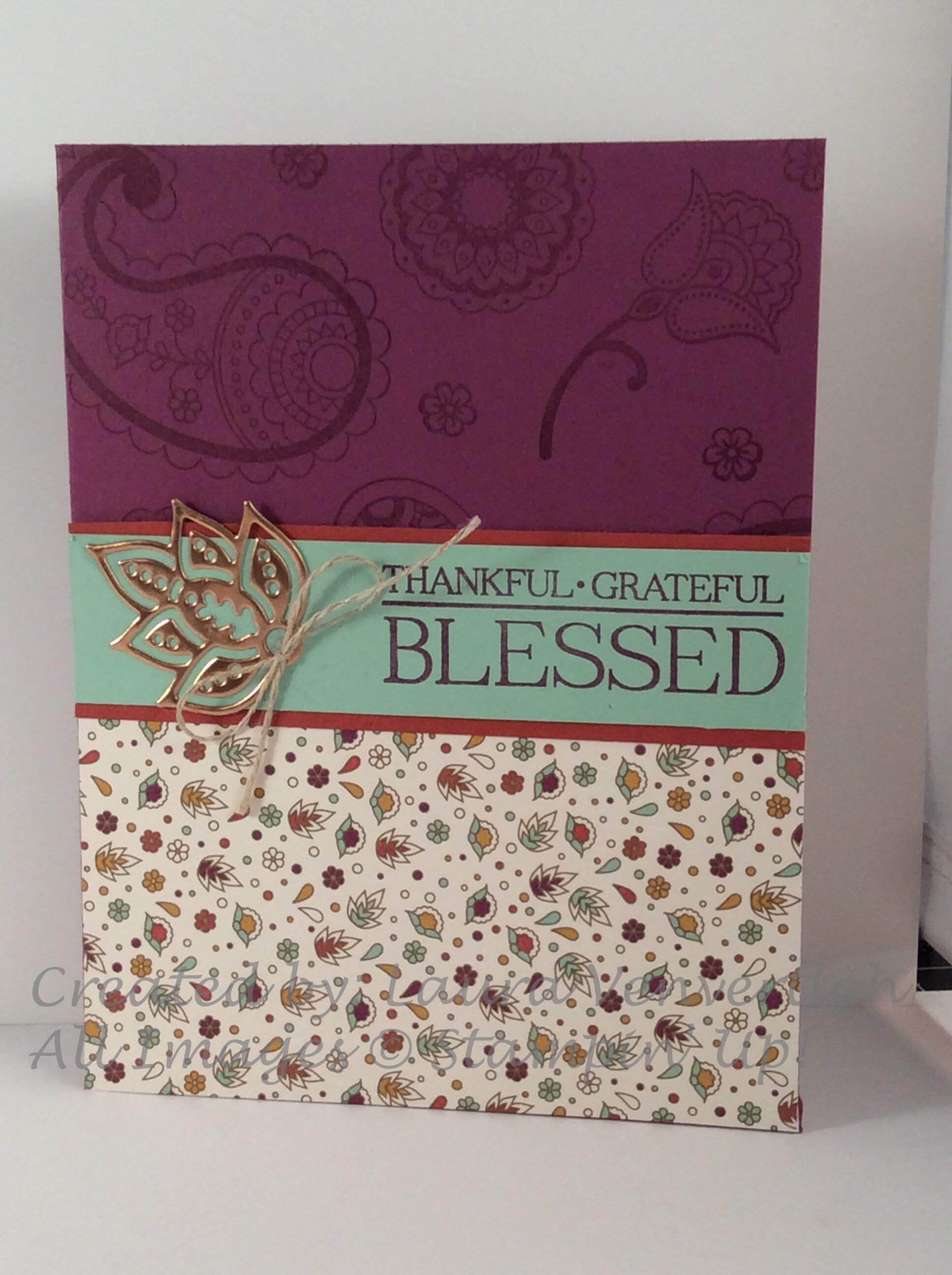 When I saw the Holiday Catalog, this set and matching DSP just stole my heart! The jewel tones and deep fall colors are stunning! And I am SOOOO happy they added Copper Foil! This card was made for my Try it Night last night. Quick and simple, but very pretty!