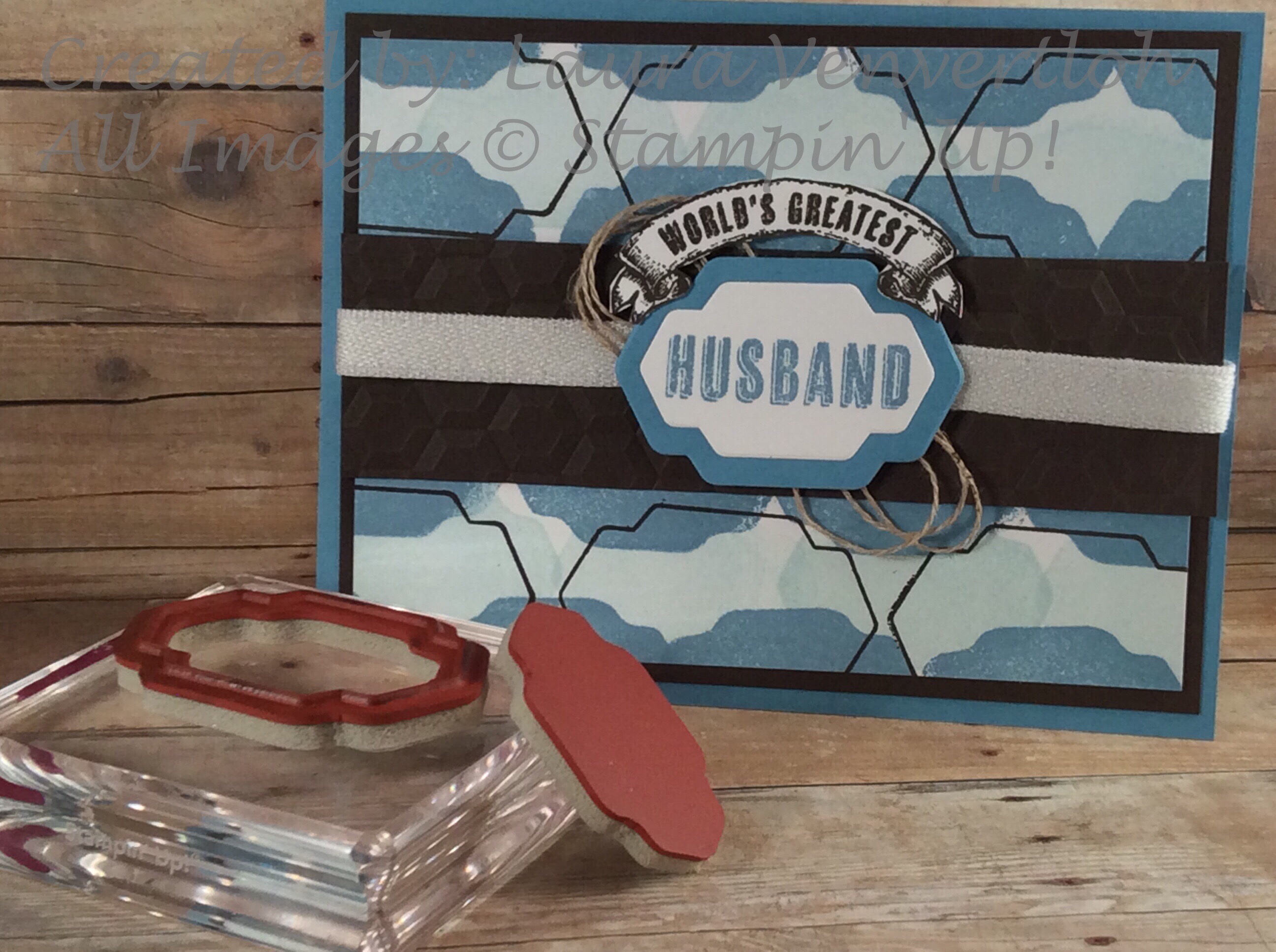 I used the Special Reason stamp set and Stylish Stems to create a masculine card! I used the rubber insert that Stampin’ Up! cuts out for us! I love it when they do that, because it’s a new stamp/shape that you weren’t counting on! I used it to make the argyle like background. I used Marina Mist, Soft Sky, and Early Espresso for the background colors.