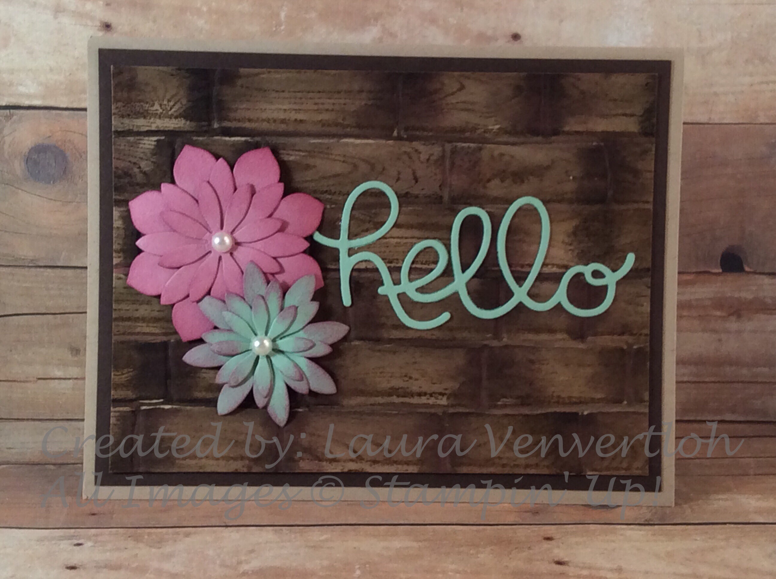 When I saw this technique on Lyssa Zwolanek’s blog, I had to try it! It’s just stunning what she discovered the Brick Wall embossing folder and the Hardwood background stamp can create!! I used this as the technique for my stamp club, and they fell in love with it!