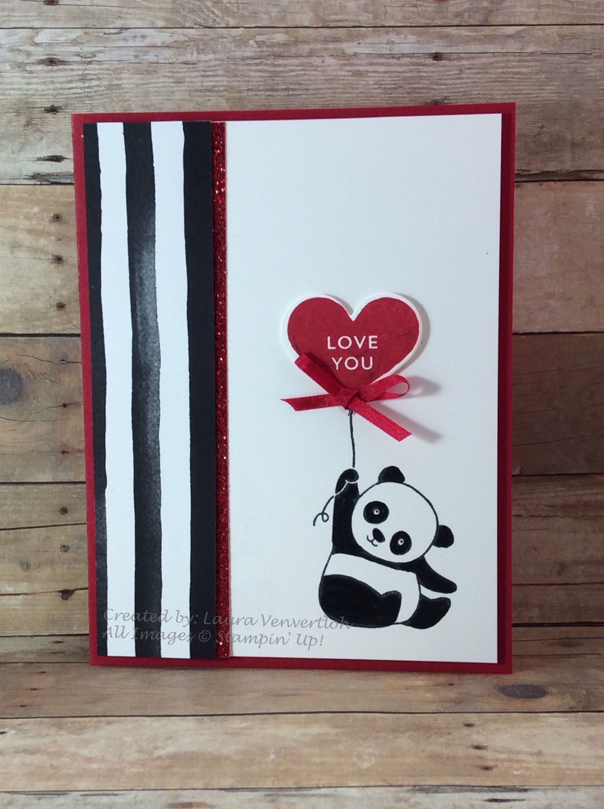 I just love this Party Panda set! And I thought with Valentine’s Day coming up next week that I could use this set! I used the “love you” heart from the Lots of Love stamp set and the Sweet & Sassy Hearts framelits.