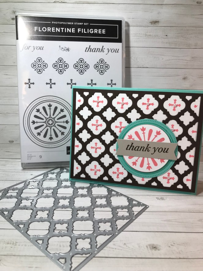 Who loves patterns and pops of color? This bundle is for you! Look at this gorgeous Florentine Thinlits Die! I see so many possibilities with he negative pieces-so I kept them to the side!