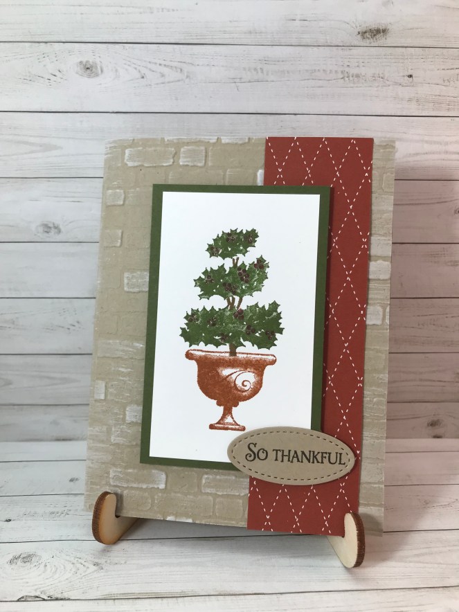 Nothing looks better than a topiary on your porch! This set was so much fun to play with and I see a ton of other ideas to use it for too! It can be used for all seasons! Just change up your color scheme and embellishments and you have a stamp set you can use all year!
