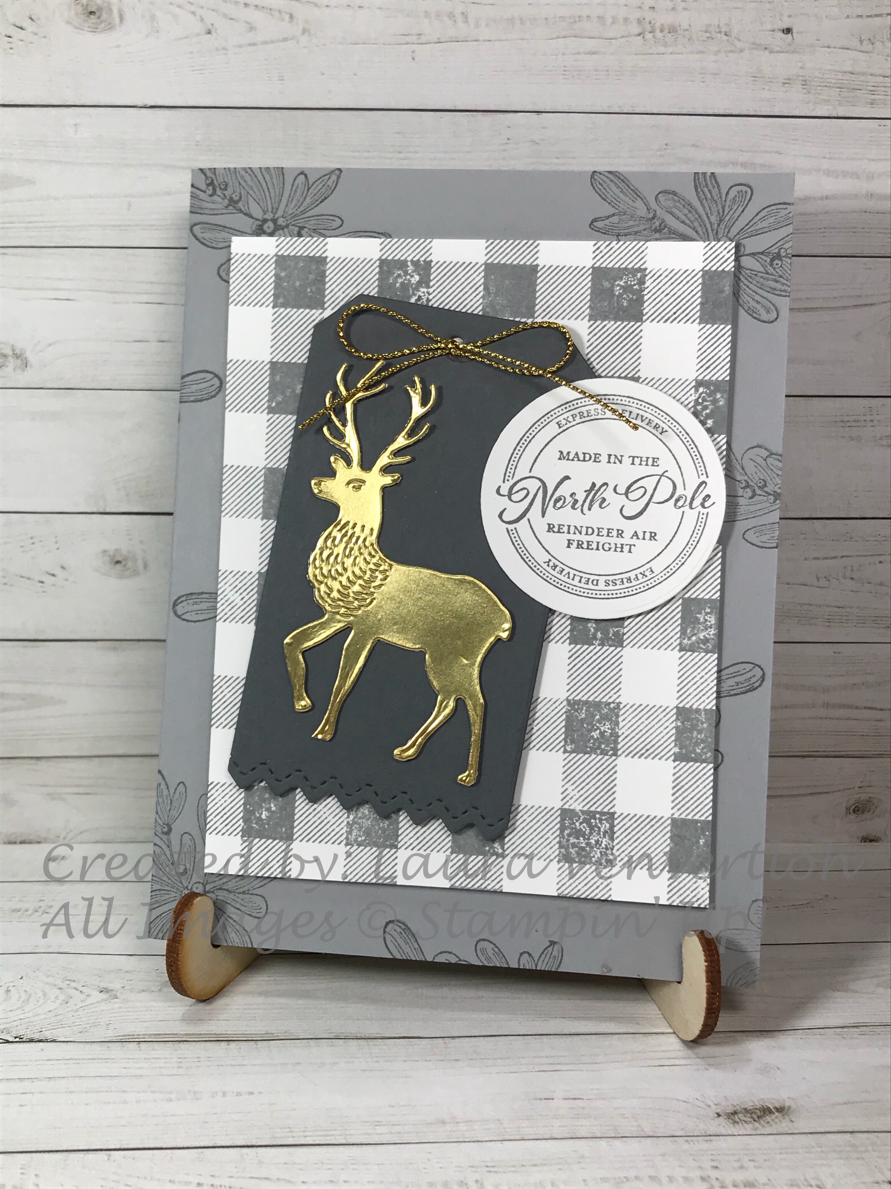 I loved the Wishes & Wonder bundle the moment I saw it in the Stampin’ Up! Holiday Catalog! Once it came in my happy mail, it took a while to conjure an idea. I usually go to Pinterest and search the set I want to use. I saw a lot of wonderful and just stunning cards-but I wanted to make mine a little different! Then it hit me!! Door tags, buffalo plaid, and a majestic deer!