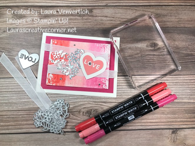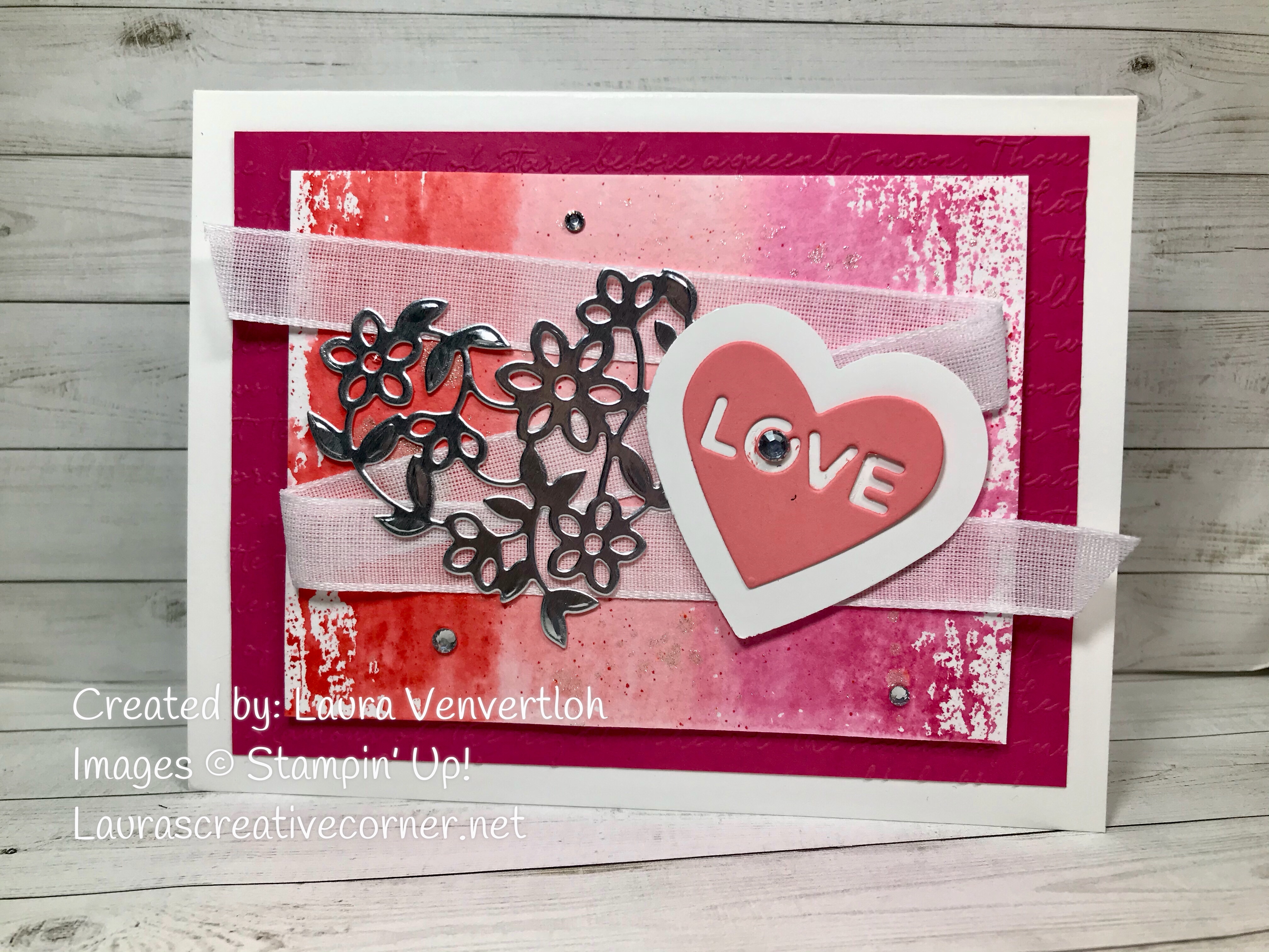 I made this card for any LOVE occasion plus it was our technique for this month card club. With the COVID cases rising, we all opted to do a virtual club. I wanted to use a technique that everyone could do from home. It even includes a video tutorial on how to make the card and there is a special guest appearance in the video!