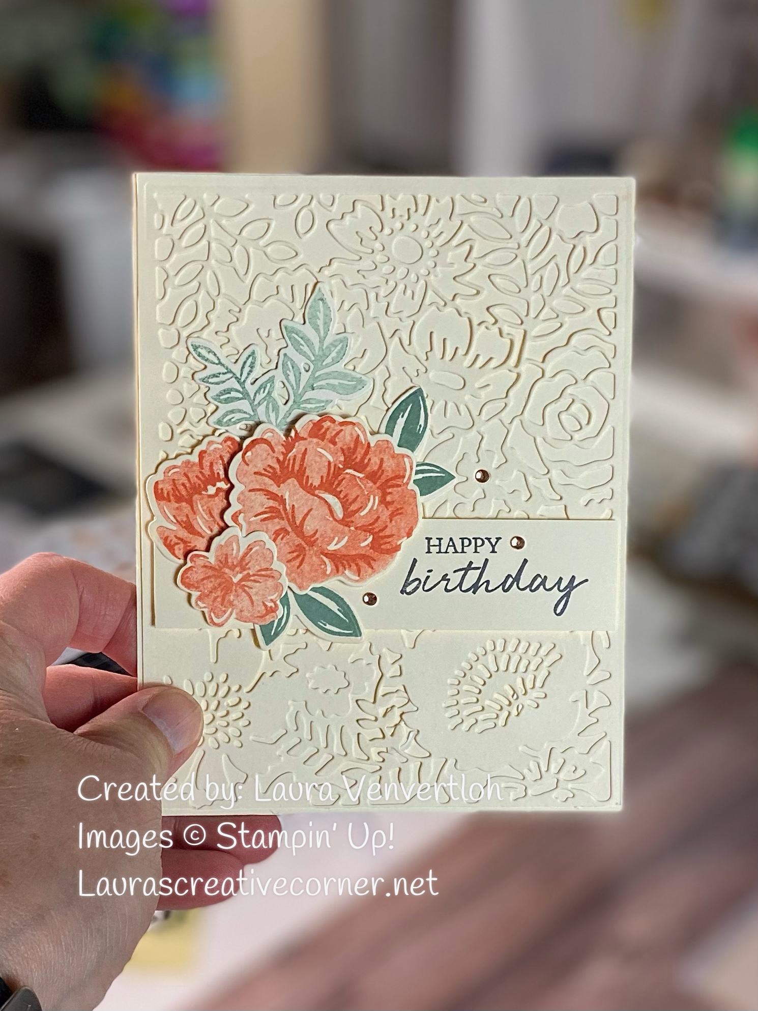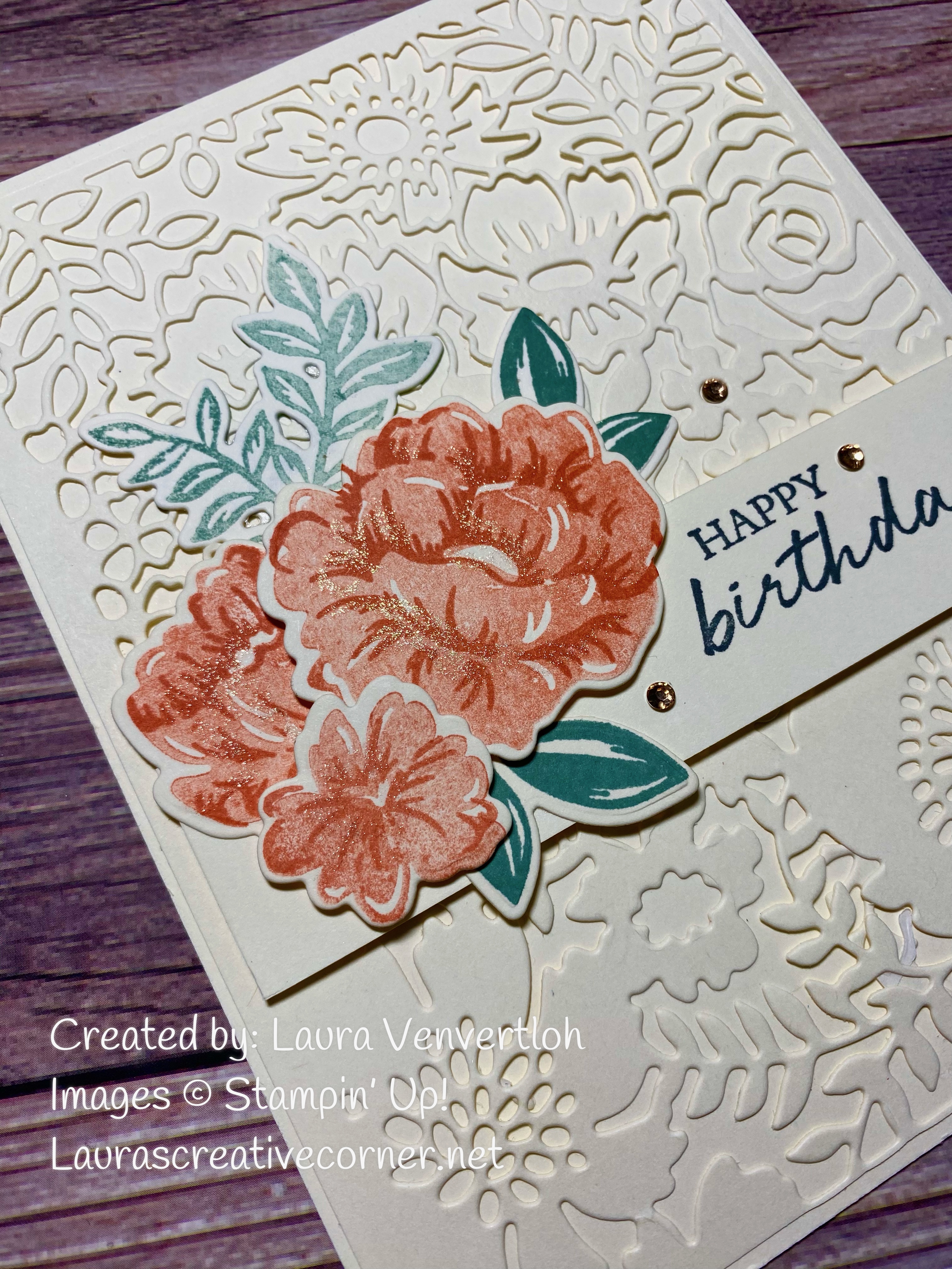 Wow, does this detailed die pack a punch or what?? This card was made by using the Two-Tone Flora Bundle from the Spring Mini 2023! And the best news is that it will carry over to the 2023-2024 Annual Catalog!