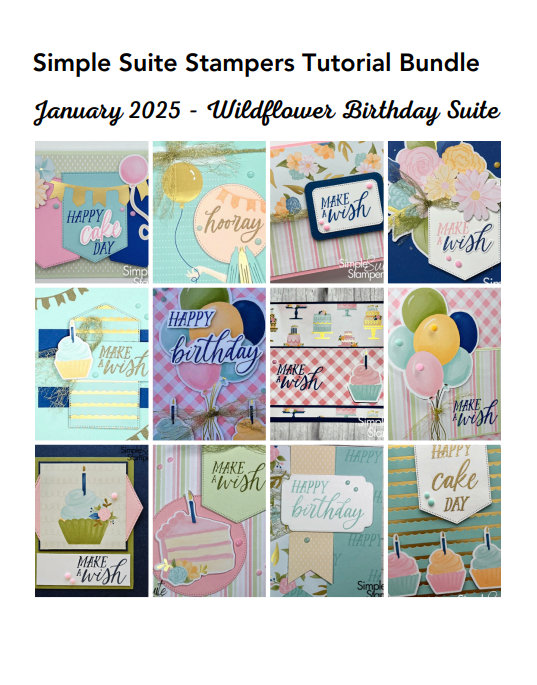 There are two ways to get the Wildflower Birthday Tutorial: Purchase $35 or more in my online store, or you can purchase just the tutorial below by clicking the link! We ask that you don’t forward it to anyone. If you choose to use a design, just reference the Simply Suite Stampers in any posts. Enjoy!!