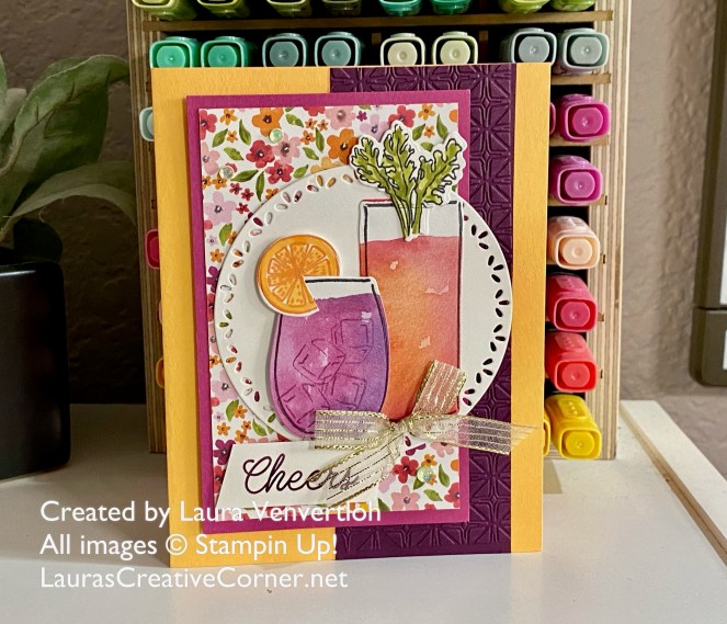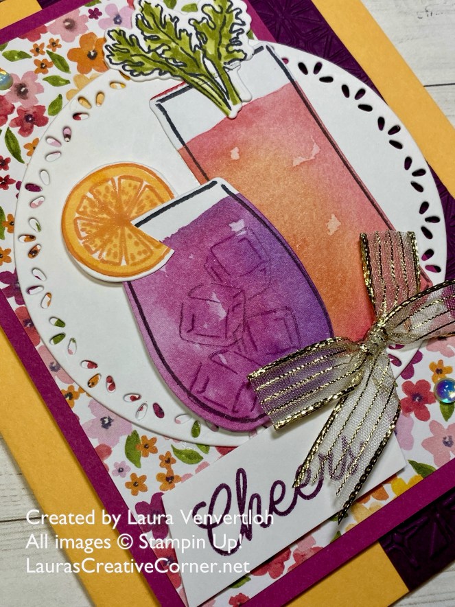 Here is a close up of the drinks that I stamped on the DSP and then cut out with the dies to create a watercolor look to the “cocktail”! I have a slideshow of the Suite Items so you can see all the goodies this one has to offer! Now through the end of June 2025, you can purchase Suites & Products from Suites at Buy One Get One at 50% OFF!