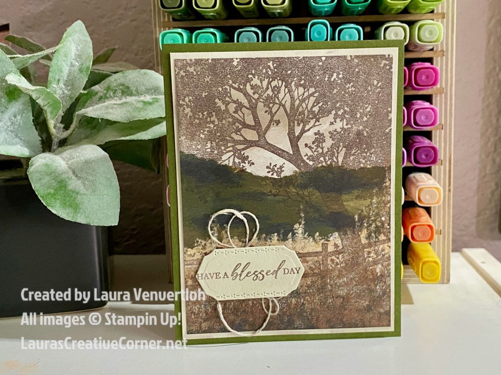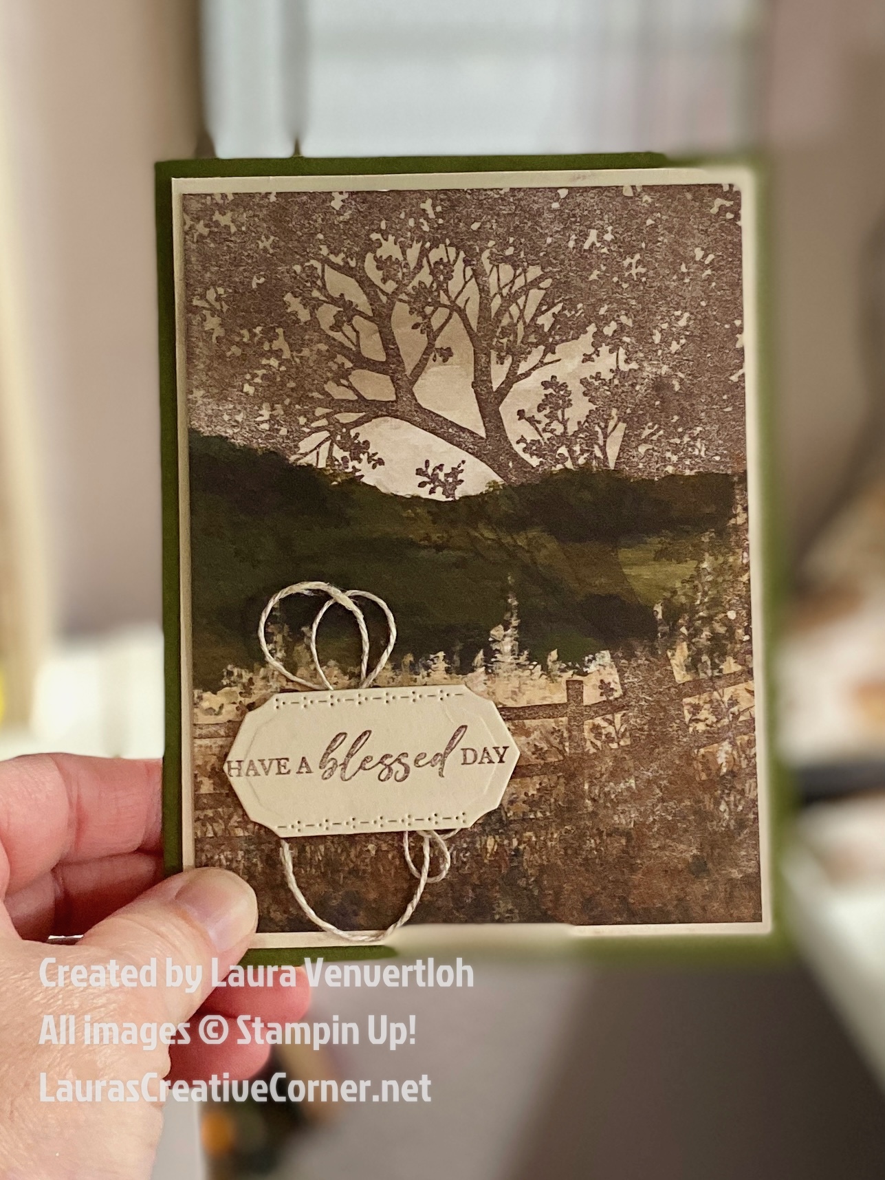 - Ink the Peaceful View Background Stamp with Early Espresso.