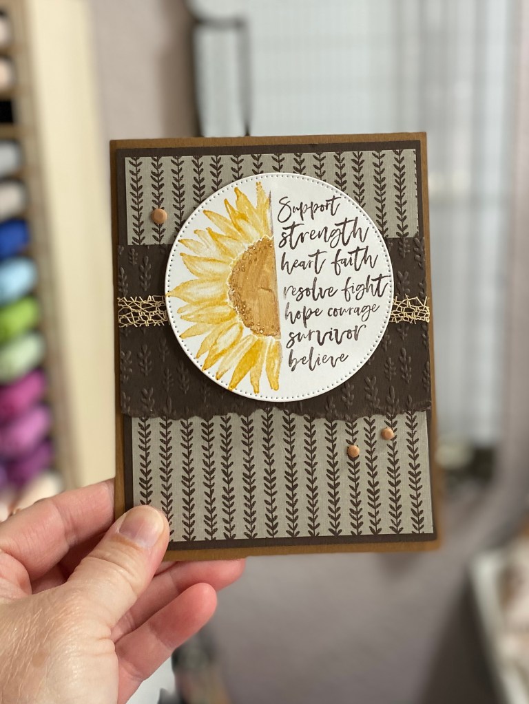 Every October, I find myself reflecting on how powerful our crafting community can be when we create with purpose. The Love & Courage Stamp Set from Stampin’ Up! embodies that perfectly — a collection designed to uplift, encourage, and remind others that they are not alone in their journey. I am now a 9 year survivor, so this is personal as well!