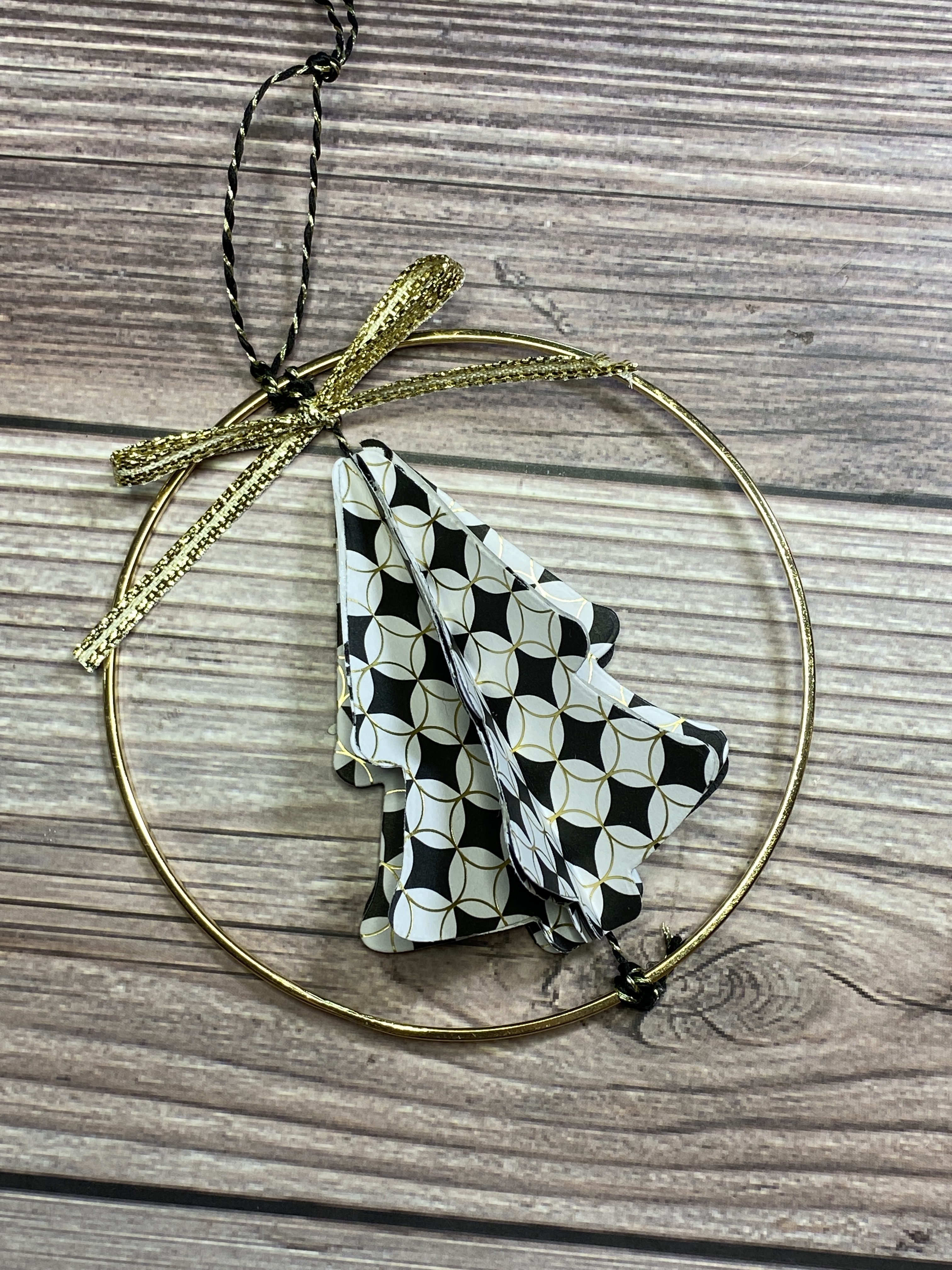 Welcome back to Week 2 of my Handmade for the Holidays series! This week, we’re taking the Modern Christmas Suite in a whole new direction by making the gold hoop the star of the show. This stunning ornament combines bold black, white, and gold elements with a dimensional honeycomb tree that looks gorgeous on your tree, tied to a gift bag, or displayed as modern holiday décor.