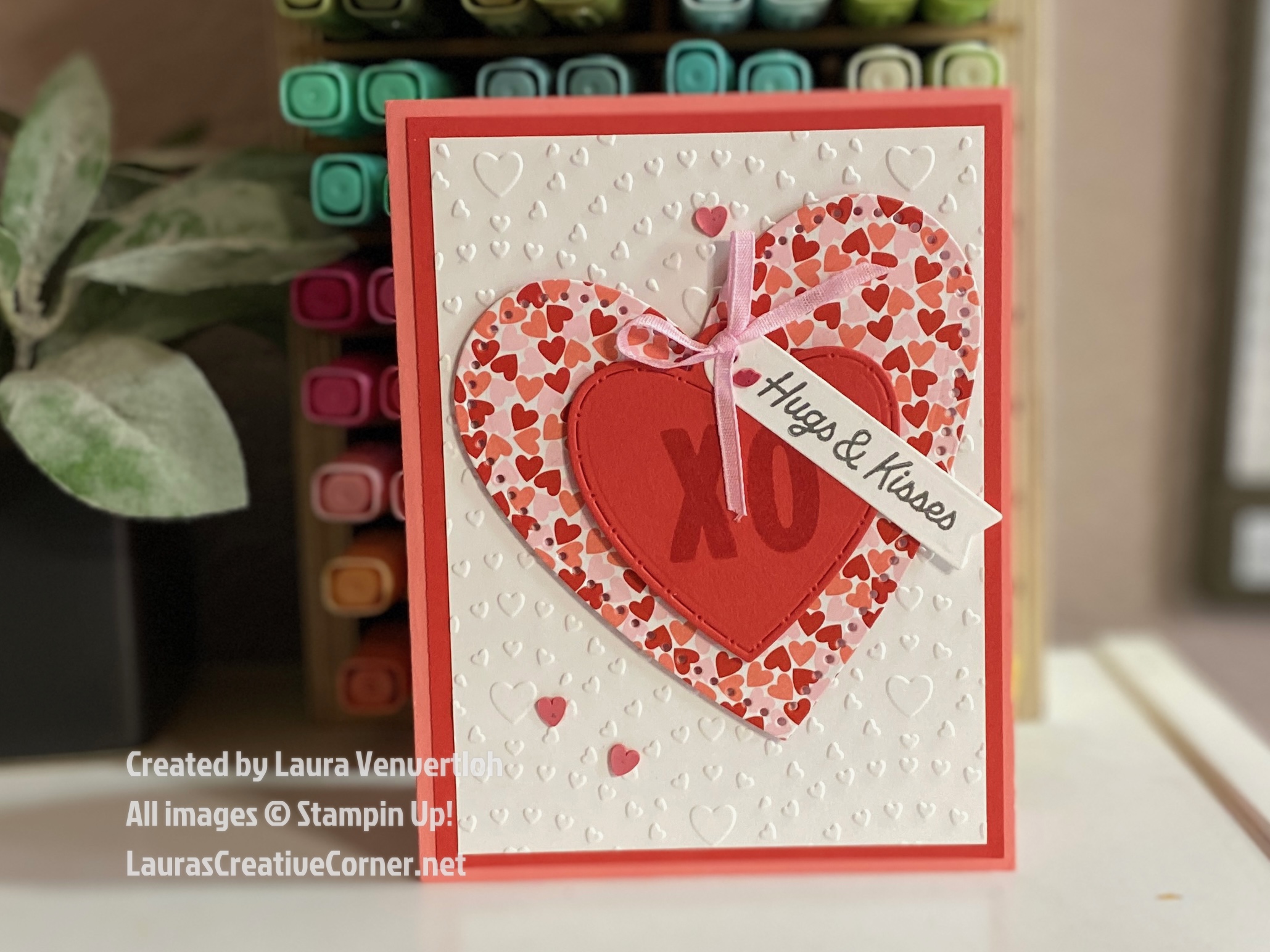 The embossed background gives softness, the bold Poppy Parade mat adds contrast, and the patterned heart brings just the right amount of sweetness. Itβs a perfect βthinking of you,β Valentine, or just-because card.