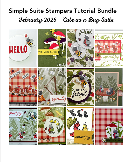 I created my featured card as part of our Simply Suite Stampers Tutorial Group, where 12 talented creators each design a unique card using the suite of the month. Our wonderful admins gather everything into one beautiful tutorial featuring: