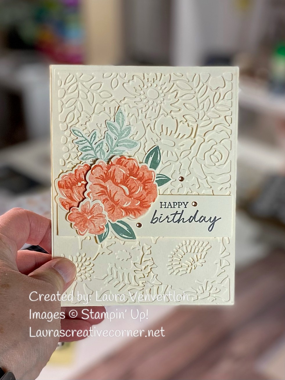 Wow, does this detailed die pack a punch or what?? This card was made by using the Two-Tone Flora Bundle from the Spring Mini 2023! And the best news is that it will carry over to the 2023-2024 Annual Catalog! I love the depth that the 2-step stamping emulates and the details in the dies,… Continue reading Elegant Two-Toned Flora