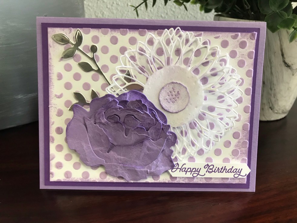 This is one of those cards you just start to play with something new and then the pieces just come together! I made this when we were on our retreat in July! (small group and we had plenty of room between us) It started with the Embossing Paste and Basic Pattern Decorative Masks. To create… Continue reading Fun with Embossing Paste &Masks