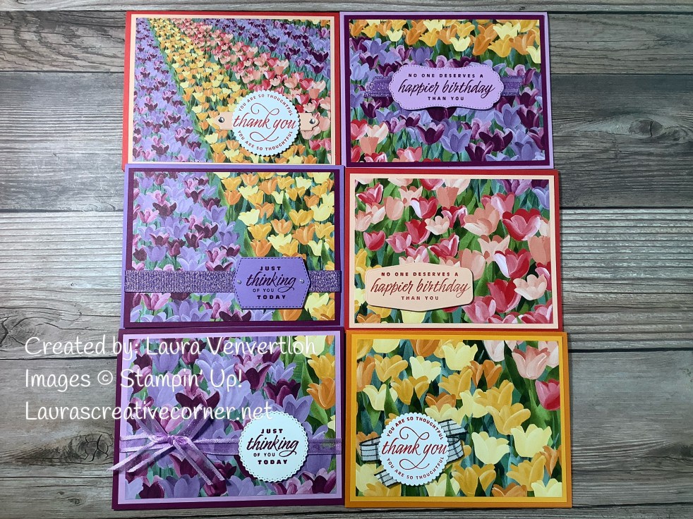 The Flowering Fields Suite was love at first site for me! My favorite season is spring, and tulips are my favorite! (Hydrangeas and daffodils too) The suite includes the Flowering Tulips bundle & the Tulip Fields Bundle, plus some adorable Brushed Brass Butterfly embellishments. There is also an Evergreen Windowpane ribbon that pairs very well… Continue reading One Sheet, Six Cards