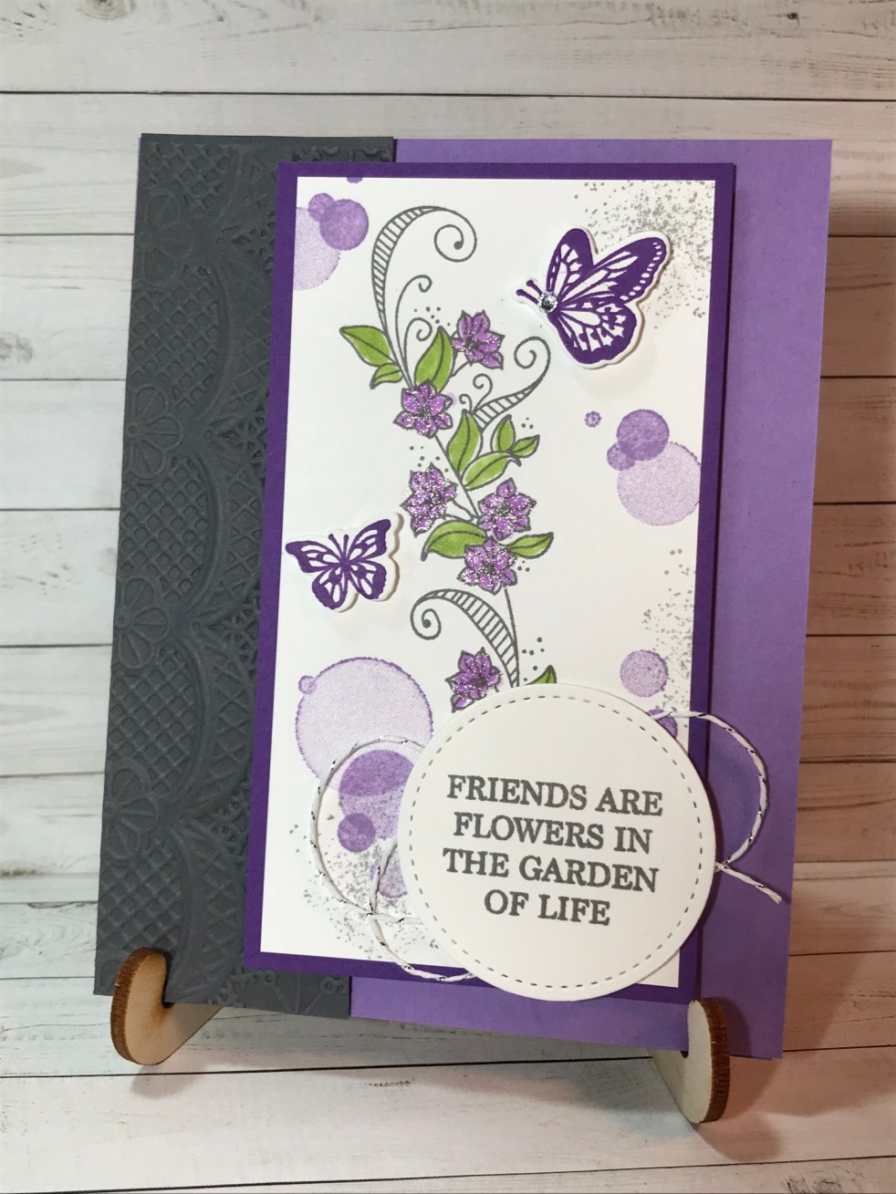 Here is another card idea for the Abstract Impressions set! This set has yielded at least 4 cards already! I had to try out the Highland Heather and Gorgeous Grape! I paired it to color the stems with Granny Apple Green and Lemon Lime Twist. The results are stunning! This card was made for my… Continue reading Little Purple Hugs