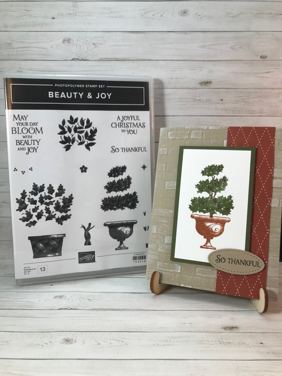 Nothing looks better than a topiary on your porch! This set was so much fun to play with and I see a ton of other ideas to use it for too! It can be used for all seasons! Just change up your color scheme and embellishments and you have a stamp set you can use… Continue reading Sneak Peek of Beauty & Joy