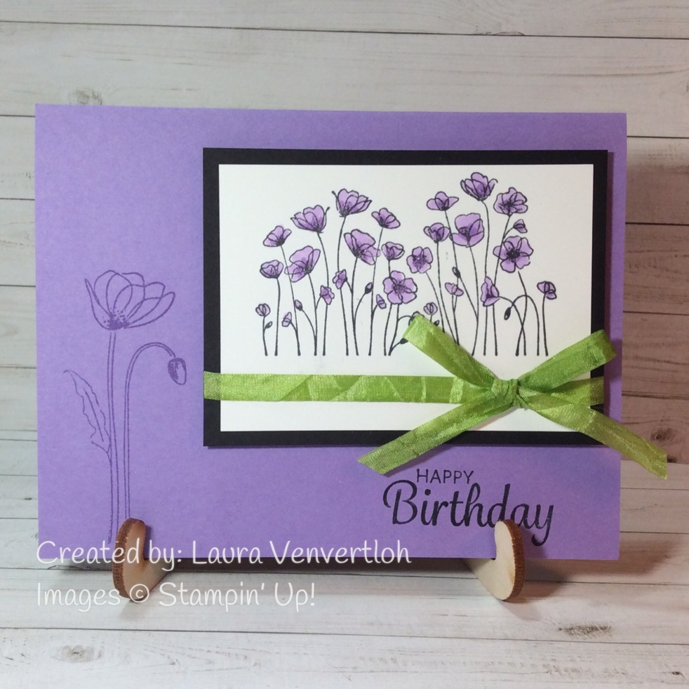 I always thought poppies were red in color, but when I googled it, I found out there is a wide array of colors! So, I chose to use one of my favorite colors, Highland Heather! I love the stamp with a bunch of poppies! They make a wonderful focal point and it keeps the card… Continue reading Purple Poppies